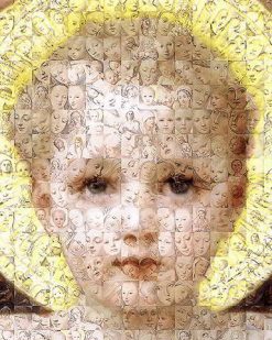 Created with hundreds of pictures of Baby Jesus.
