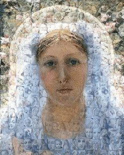 - Each mosaic is created from images that match the main subject. For instance, the “Sacred Heart of Jesus” is created using hundreds of images of Jesus. The “Immaculate Heart of Mary” is created with images of Mary. The “Madonna of the Lilies” depicts both Baby Jesus and the Blessed Mother so it contains images of both of them. In a JesusMosaic of a Saint, images are used that represent that particular Saints devotion to Jesus, Mary or both; as individually required. Overall, in JesusMosaics, you can see and enjoy hundreds of different famous paintings of the faces of Jesus and/or the Virgin Mary.