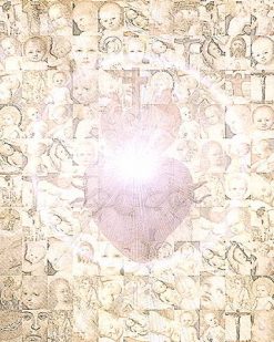 - Each mosaic is created from images that match the main subject. For instance, the “Sacred Heart of Jesus” is created using hundreds of images of Jesus. The “Immaculate Heart of Mary” is created with images of Mary. The “Madonna of the Lilies” depicts both Baby Jesus and the Blessed Mother so it contains images of both of them. In a JesusMosaic of a Saint, images are used that represent that particular Saints devotion to Jesus, Mary or both; as individually required. Overall, in JesusMosaics, you can see and enjoy hundreds of different famous paintings of the faces of Jesus and/or the Virgin Mary.